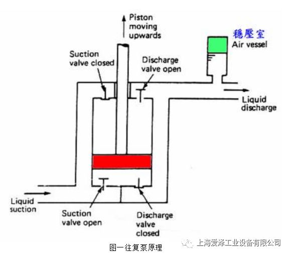 一往復(fù)泵:往復(fù)泵原理(圖一)系利用活塞上行將,氣缸中的流體排出,活塞下行時(shí),將流體吸入。往復(fù)式泵之特性:由于往復(fù)式原鄉(xiāng)排出流體時(shí)并不連續(xù), 于是在管中產(chǎn)生脈沖。這樣會(huì)使管路系統(tǒng)產(chǎn)生震動(dòng),為了解決這個(gè)問(wèn)題,就必須要在管路排出管加裝空氣室,使流量得以平均。正排量往復(fù)泵常用于急鍋爐 給水,救火,艙底水...等。