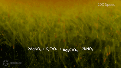 硝酸銀和氯化鈉生成氯化銀的過程如同奔騰的瀑布。
