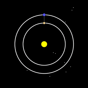 是地球與金星連線中點(diǎn)繞太陽的運(yùn)行軌跡:
