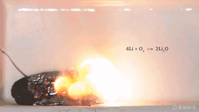 金屬鋰的燃燒像鐵樹開花,不過是爆米花。